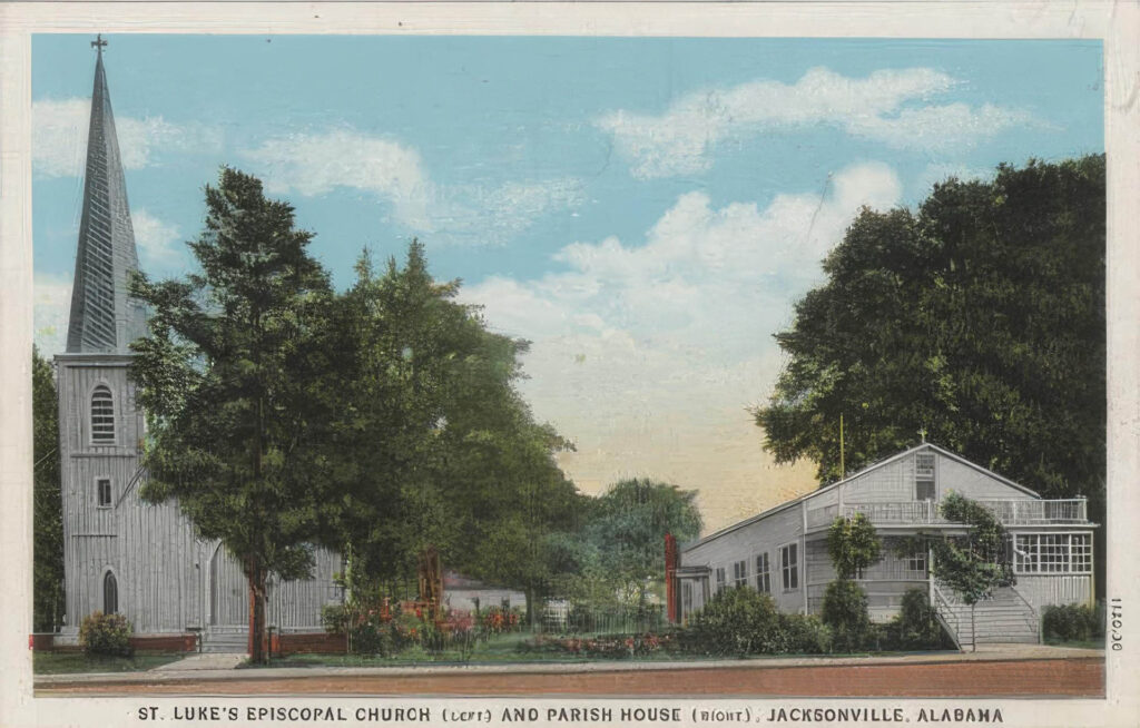 The parish house complex was completed between 1992 and 1994. The church, designed by Richard Upjohn (architect for Trinity Wall Street in New York City), is considered an excellent example of (Carpenter) Gothic Revival church architecture. St. Luke’s was the third Upjohn church built in Alabama and is considered by many to be the most faithful to Upjohn’s original design. It is the oldest church structure in Jacksonville and the second oldest in Calhoun County. The church was added to The Alabama Register of Landmarks & Heritage on March 4, 1976.